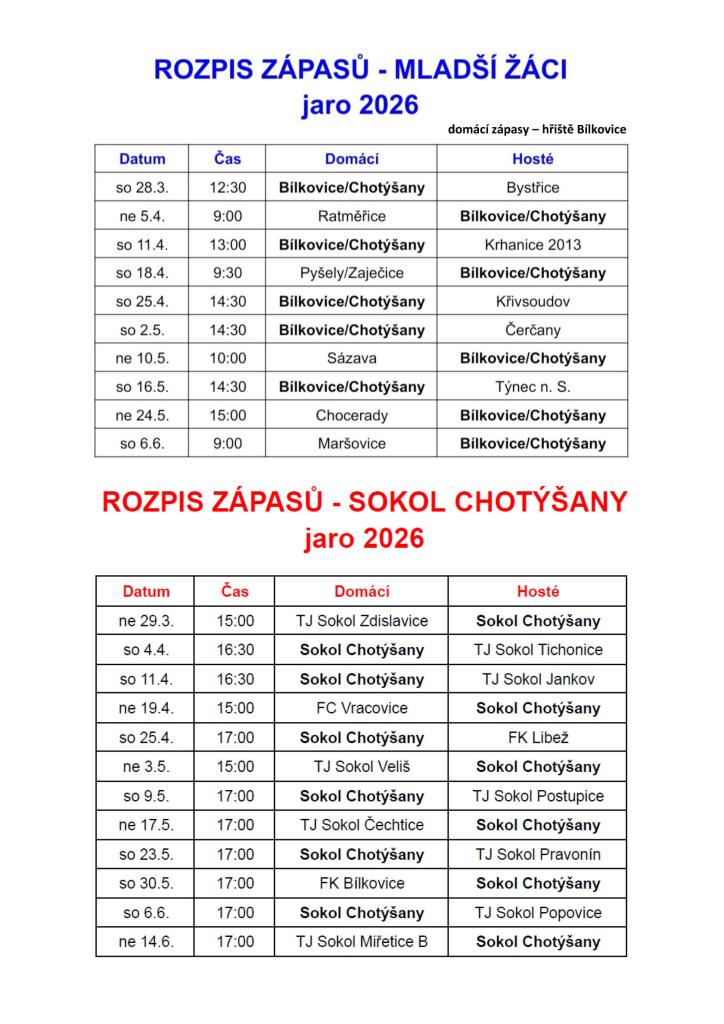 rozpisy družstev Sokola Chotýšany